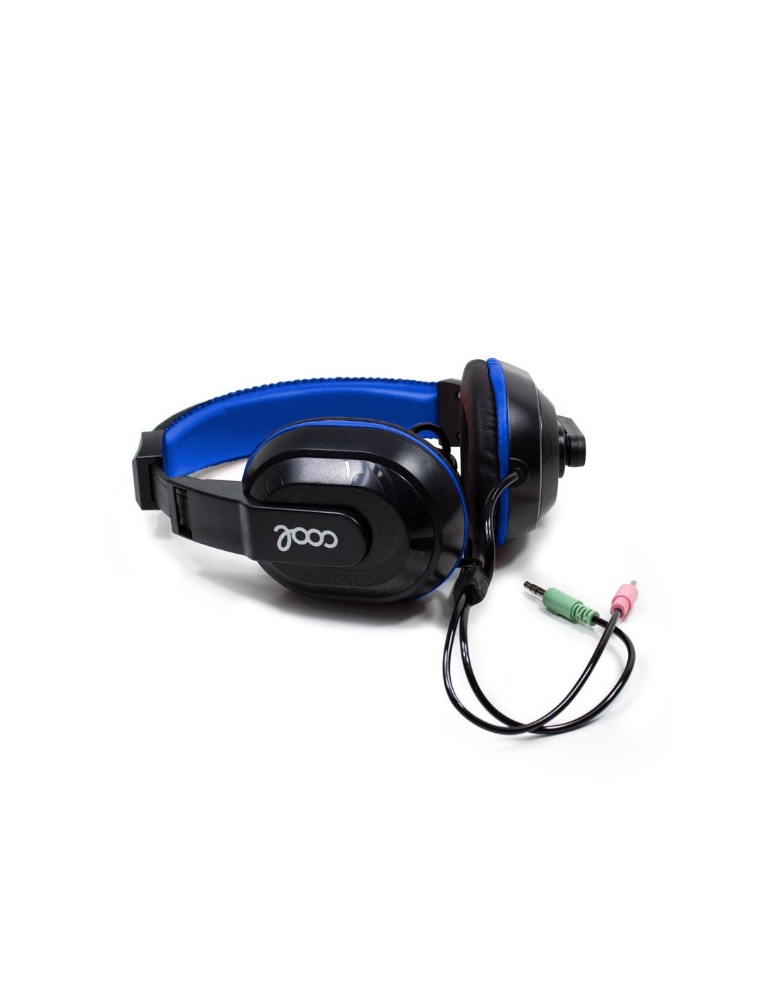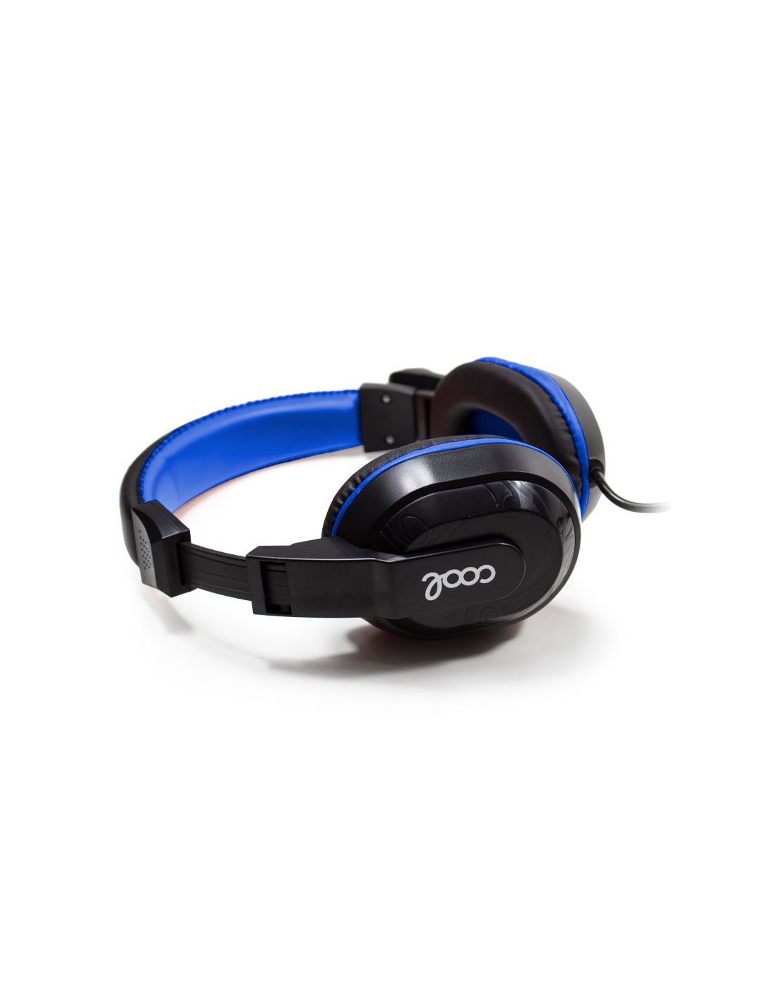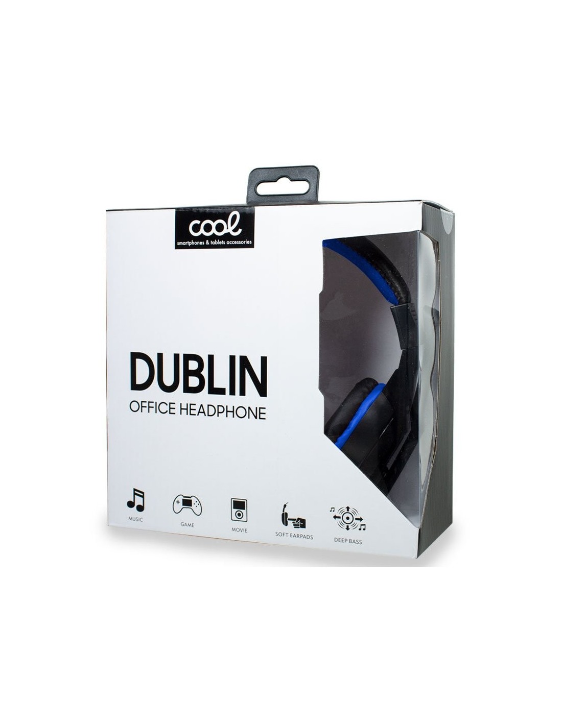 Auriculares COOL Dublin con micrófono incorporado de alta calidad, con varilla ajustable. Ideal para escuchar música, usar en videojuegos o ver películas. Color negro con detalles en color azul. Auricular y soporte superior acolchados para una mayor comodidad.