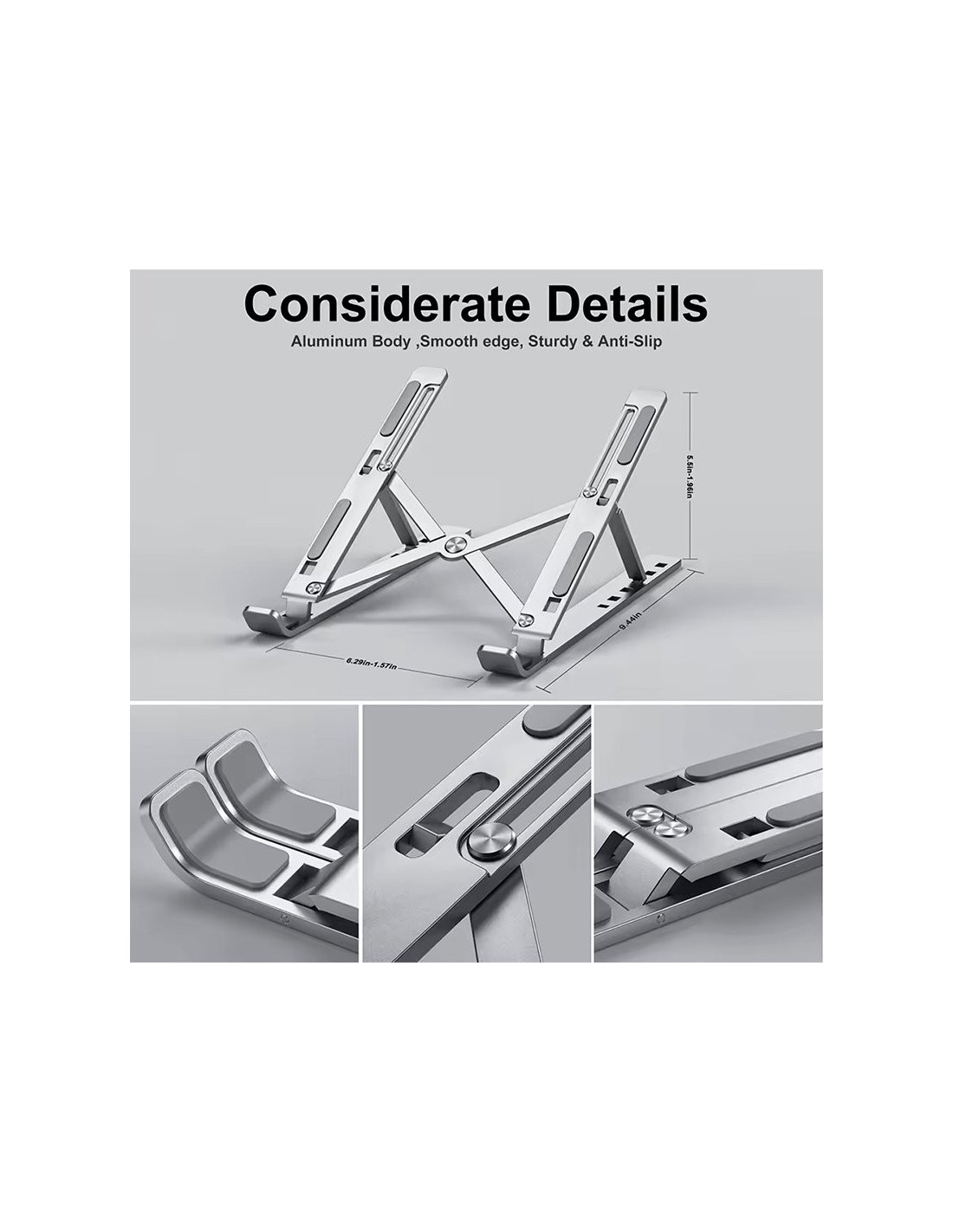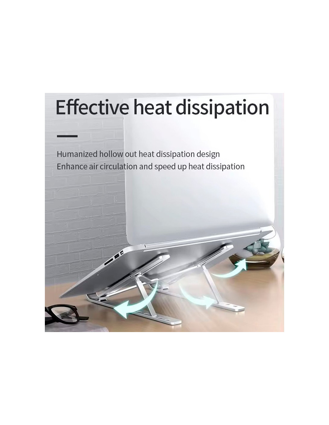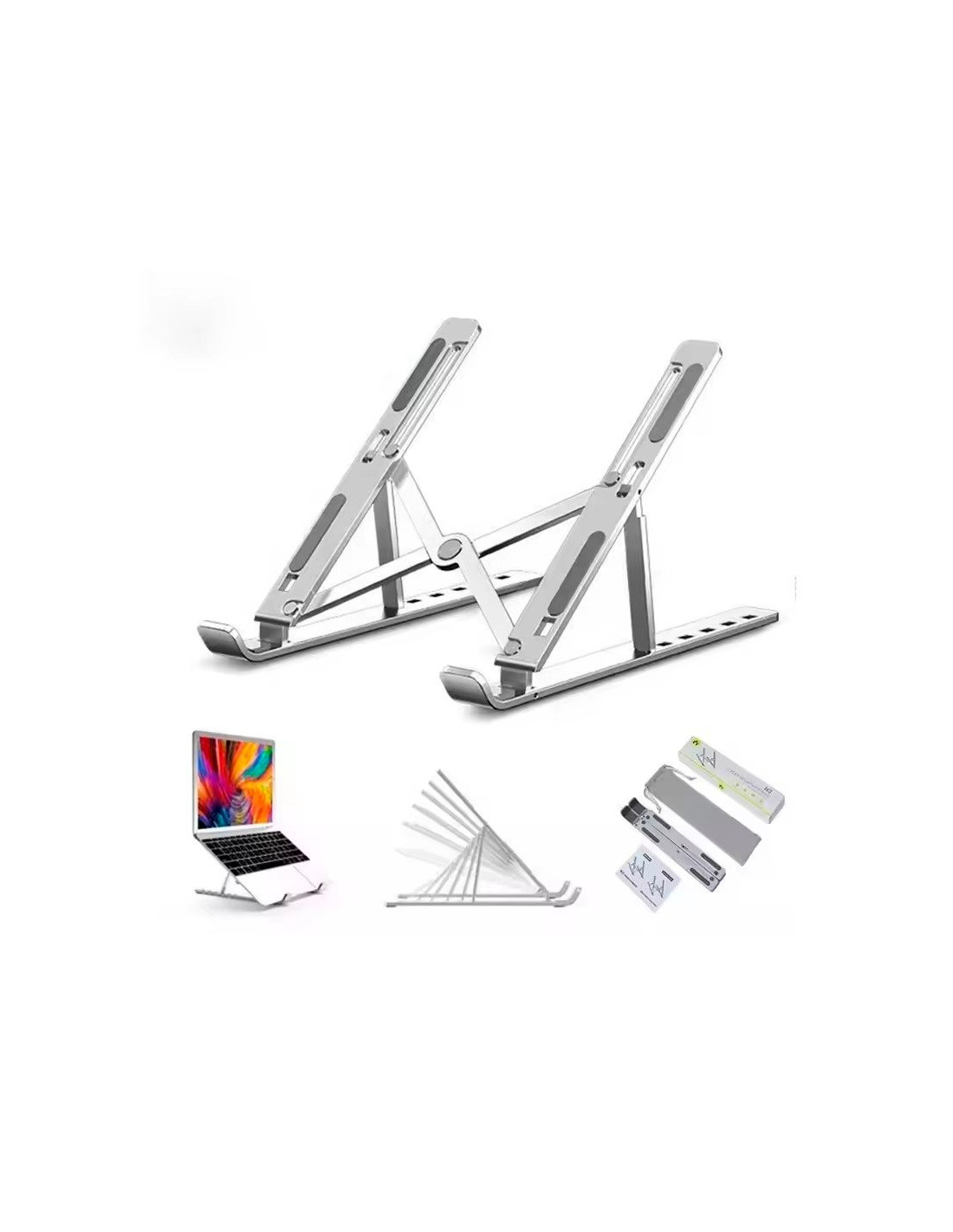 Soporte universal para colocación y refrigeración. Válido para colocar ordenadores portátiles, chromebooks y tablets.