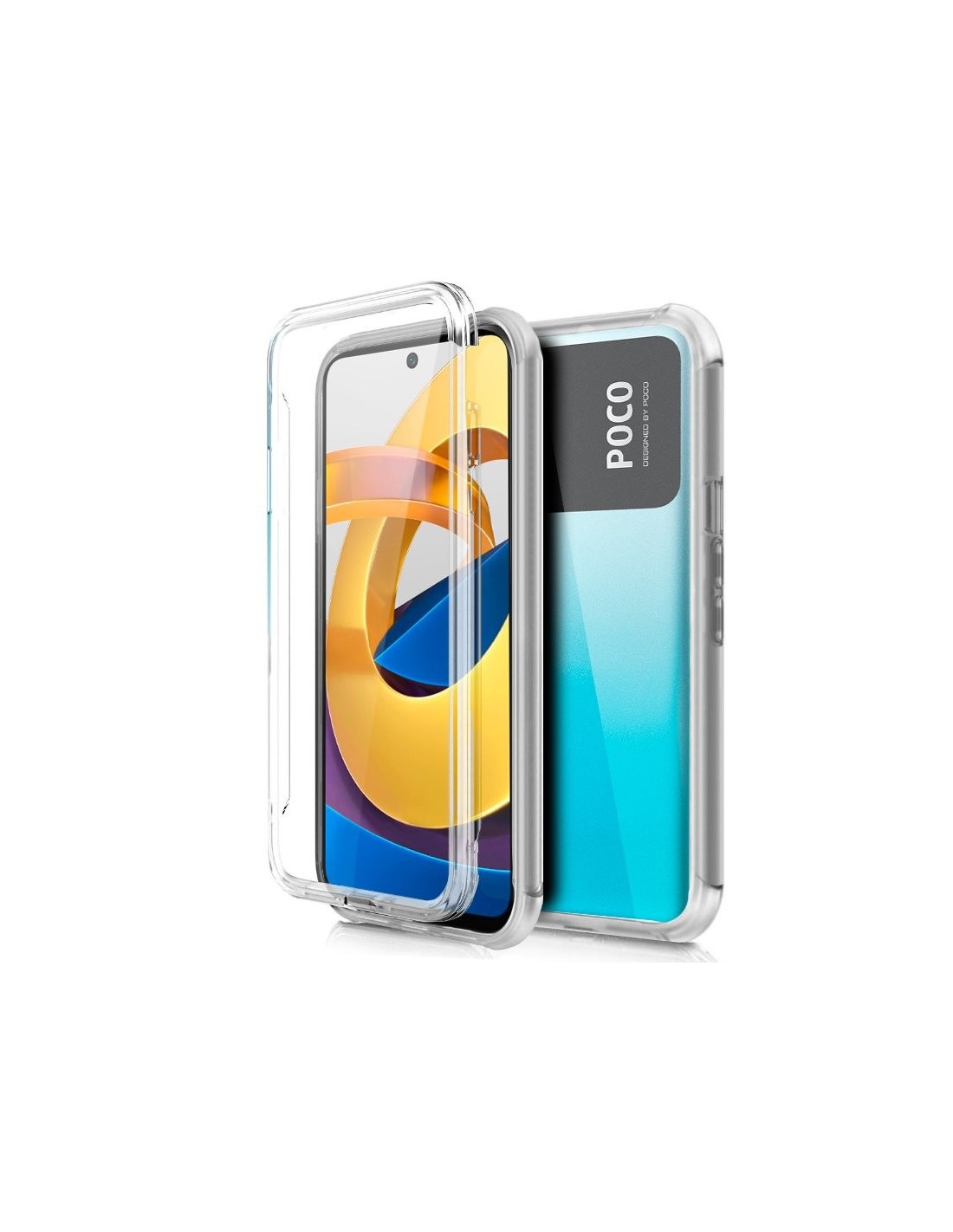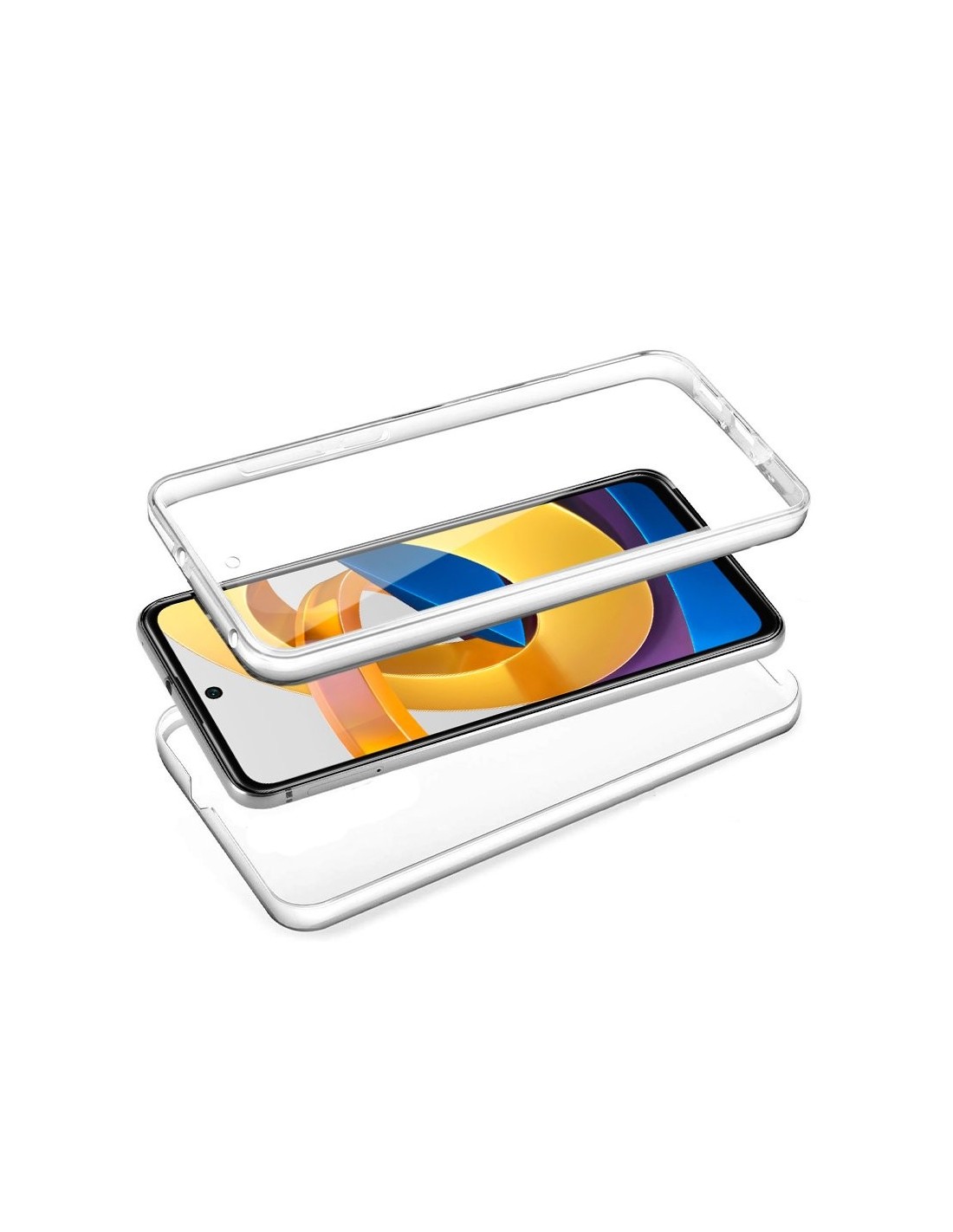 Funda resistente para móvil, de tipo transparente, silicona semirígida 360º, cubre parte frontal y trasera del smartphone.