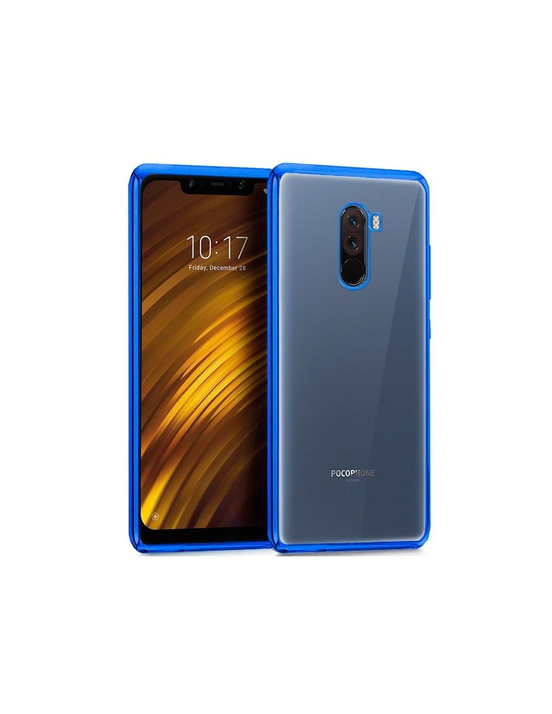 Carcasa TPU transparente Xiaomi Pocophone F1 borde metalizado azul
