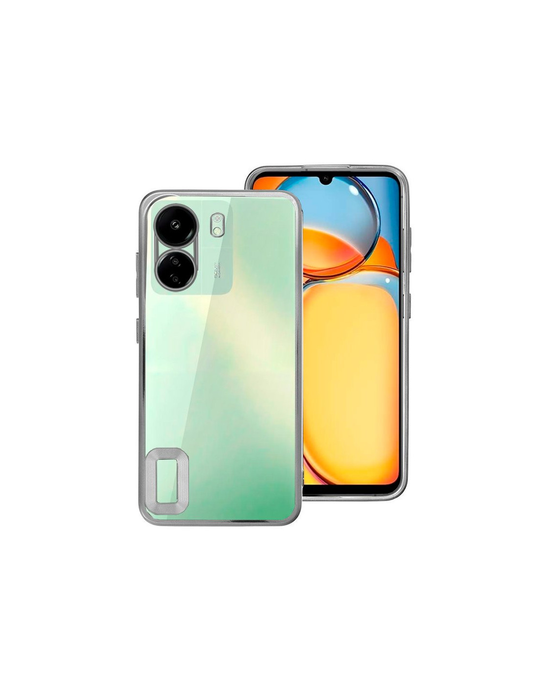 Carcasa TPU transparente Xiaomi Redmi 13C / 13C 5G / Poco C65 borde metalizado plata