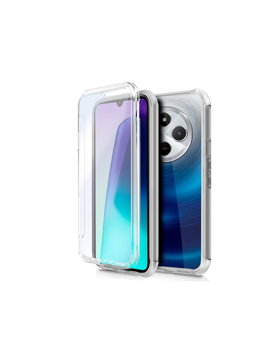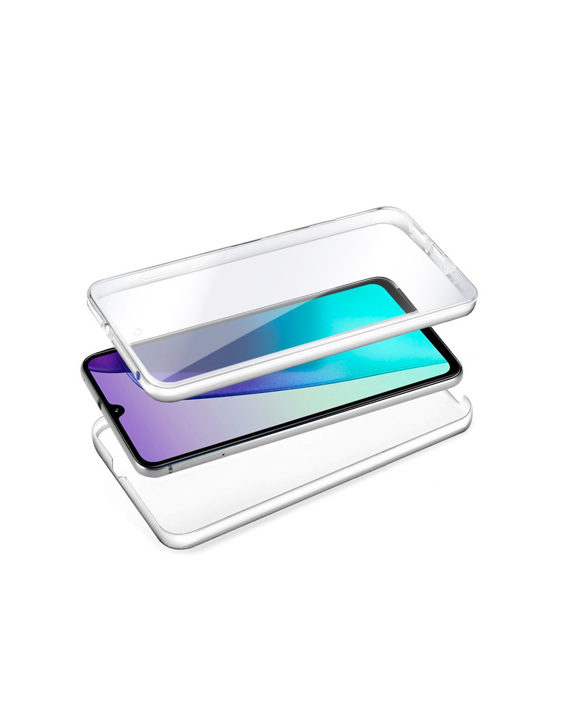 Funda resistente para móvil, de tipo transparente, silicona semirígida 360º, cubre parte frontal y trasera del smartphone.