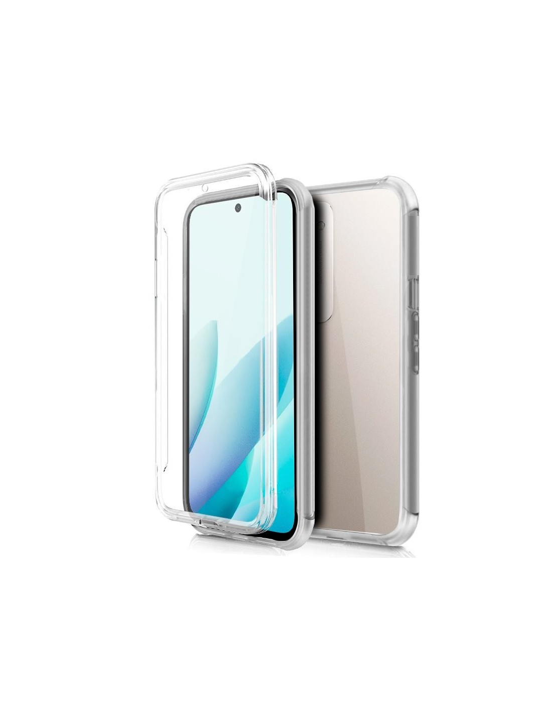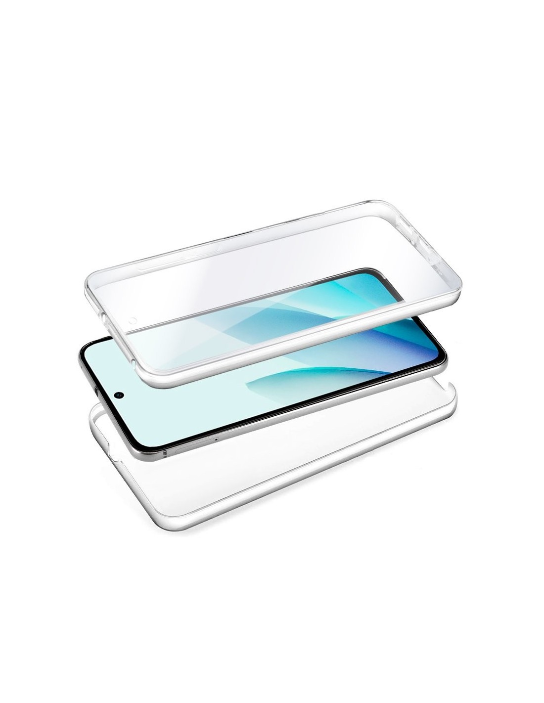 Funda resistente para móvil, de tipo transparente, silicona semirígida 360º, cubre parte frontal y trasera del smartphone.