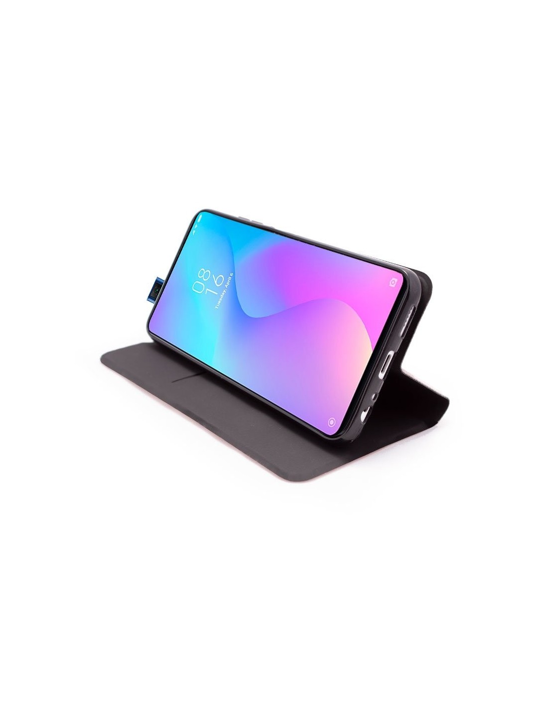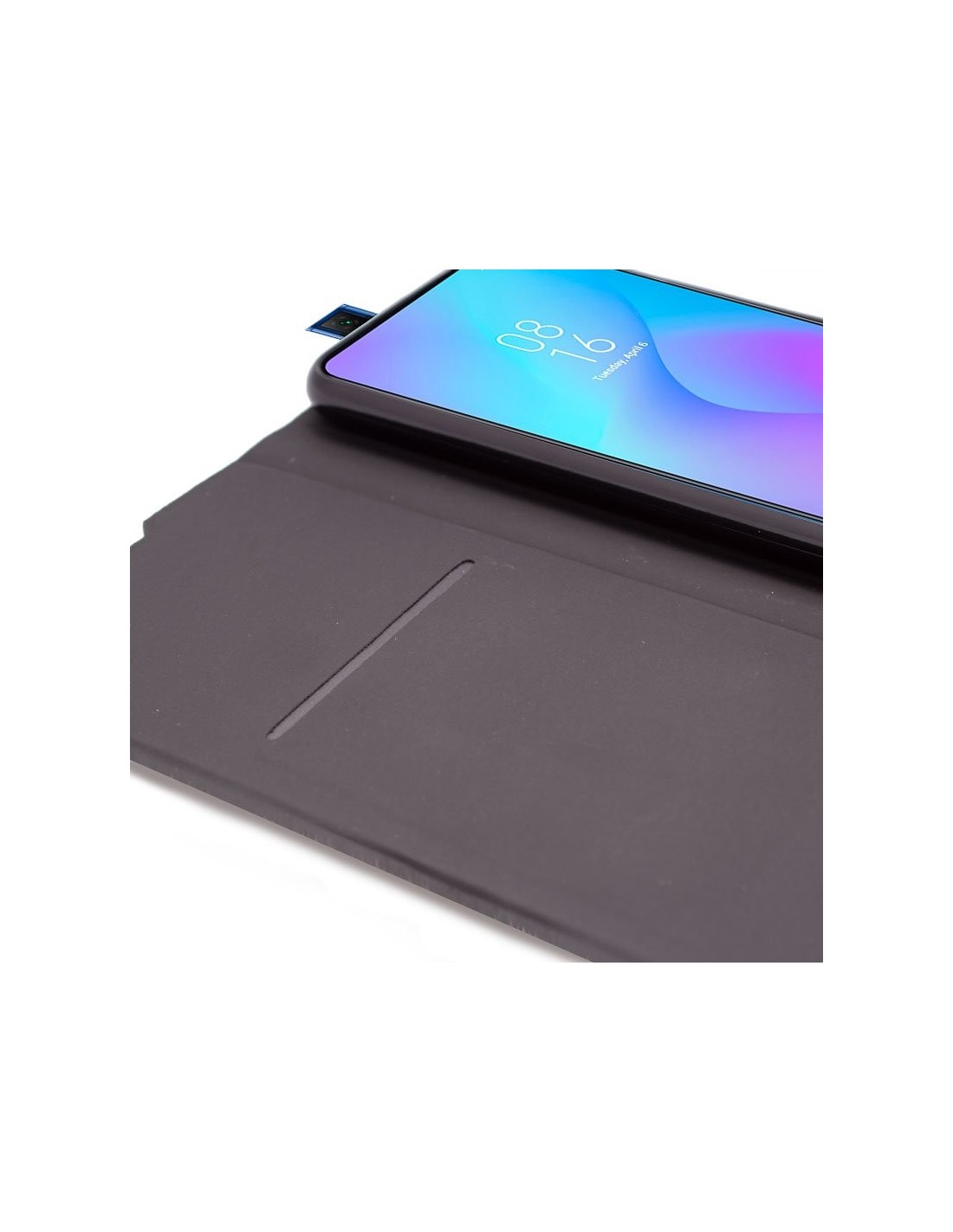 Incorpora en uno de los lados interiores, un bolsillo para meter tarjetas. También puedes mantener tu smartphone apoyado tanto de manera vertical como horizontal, para ver tus vídeos favoritos, ya que el pliegue de la funda hace de soporte.