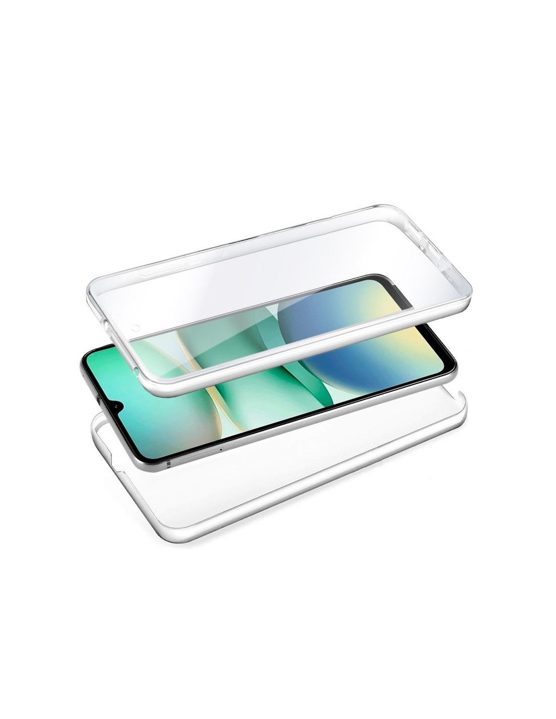 Funda resistente para móvil, de tipo transparente, silicona semirígida 360º, cubre parte frontal y trasera del smartphone.