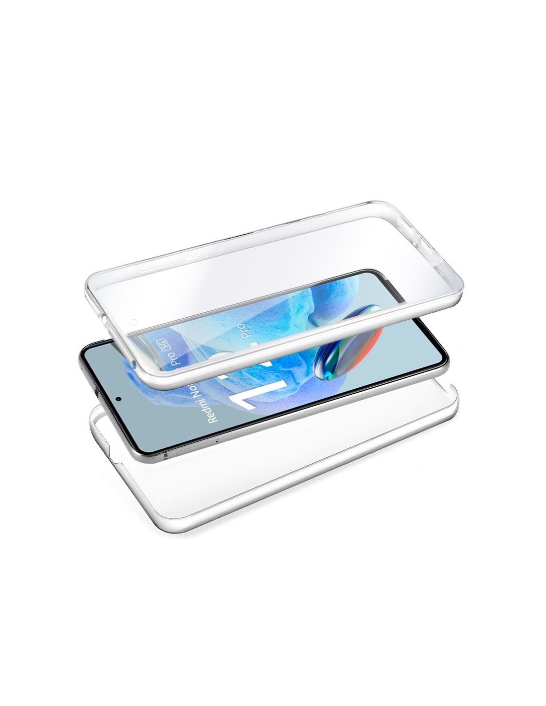 Funda resistente para móvil, de tipo transparente, silicona semirígida 360º, cubre parte frontal y trasera del smartphone.