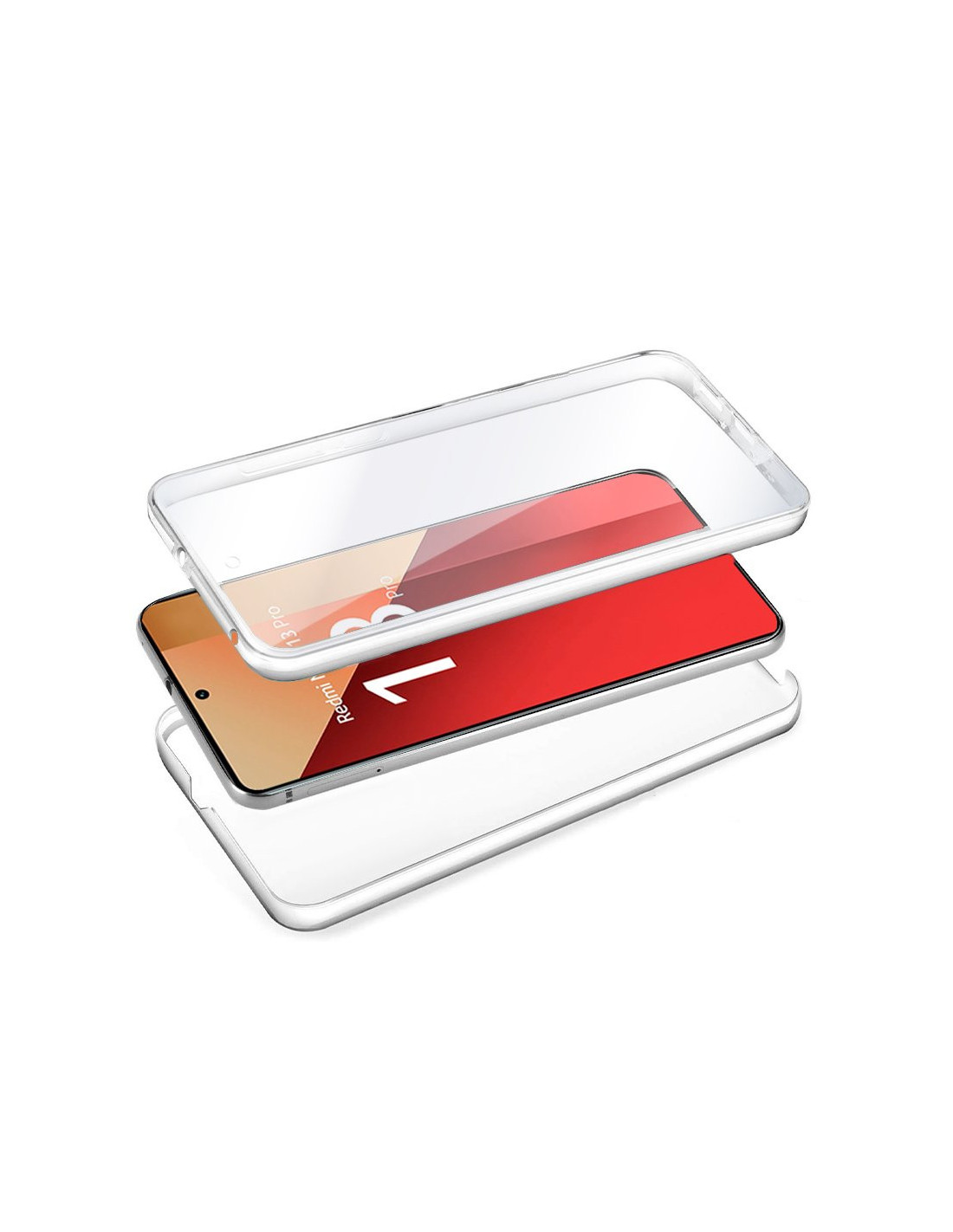 Funda resistente para móvil, de tipo transparente, silicona semirígida 360º, cubre parte frontal y trasera del smartphone.