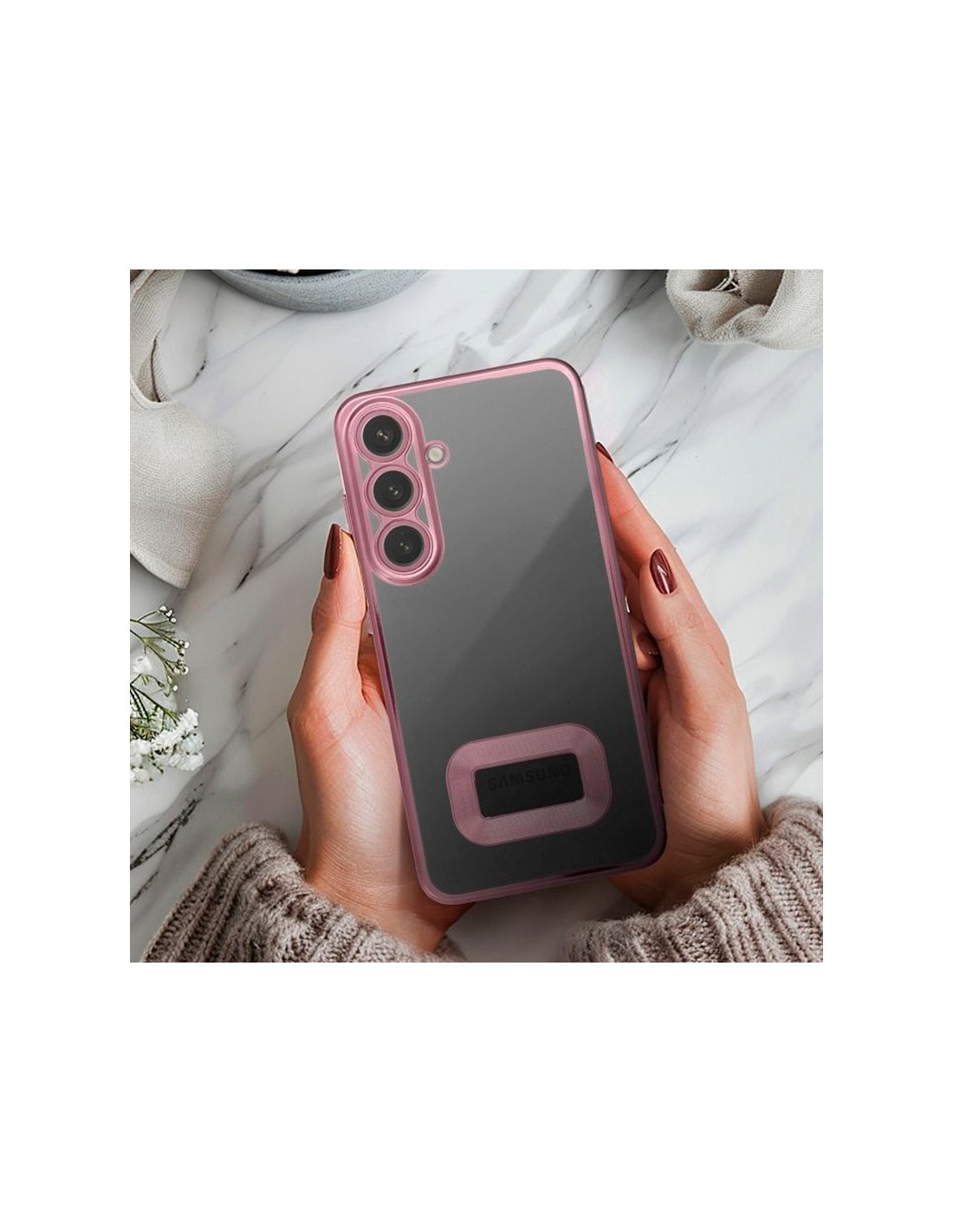 Carcasa totalmente transparente. Acabado metalizado en los bordes tipo bumper.