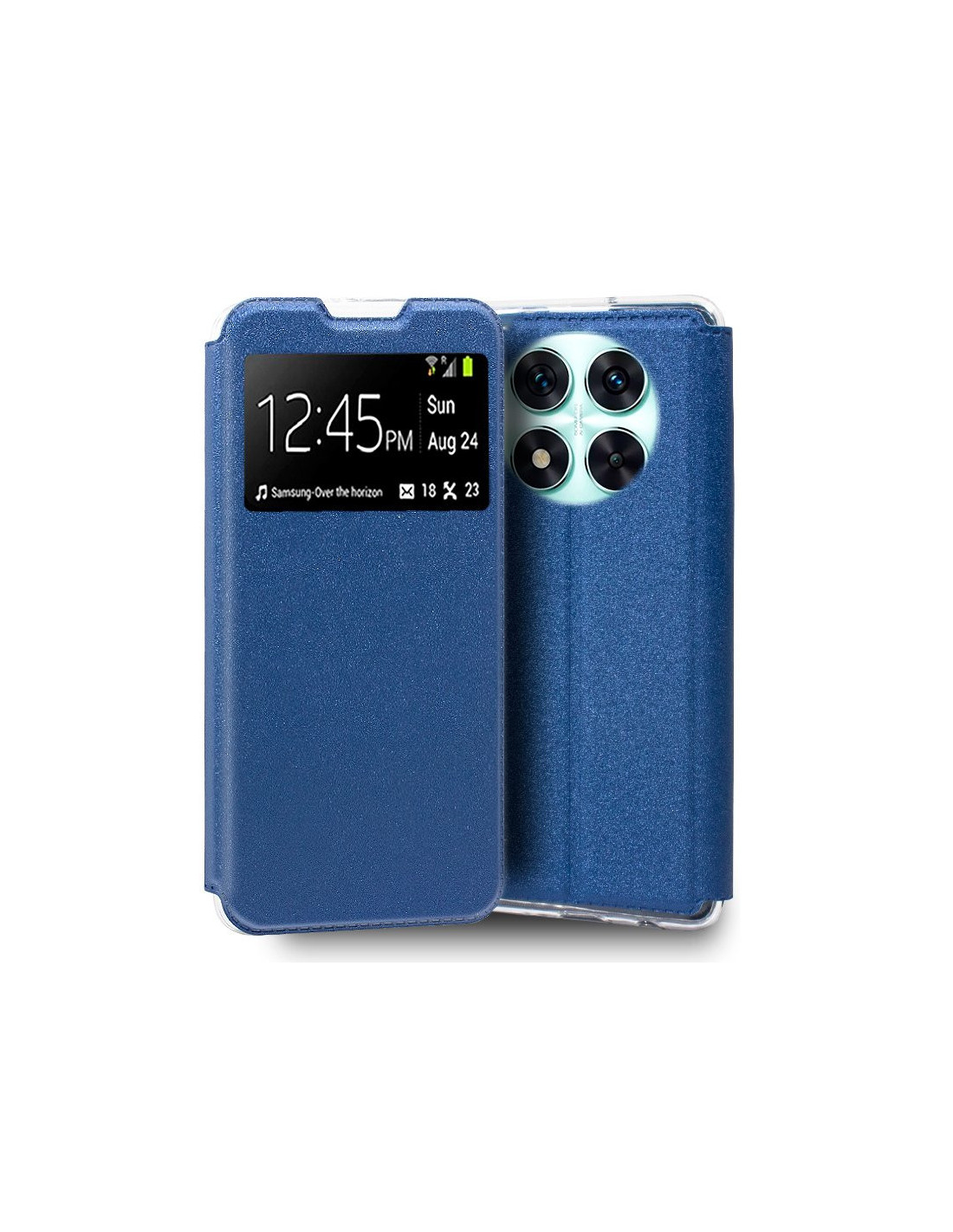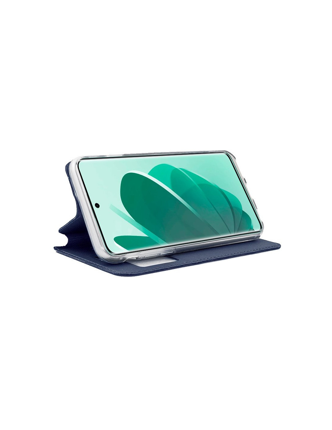 Apertura lateral tipo libro. Incorpora una carcasa específica del modelo de smartphone, para incrustarlo y dejarlo perfectamente encajado.