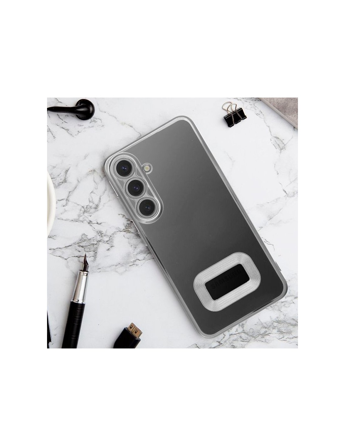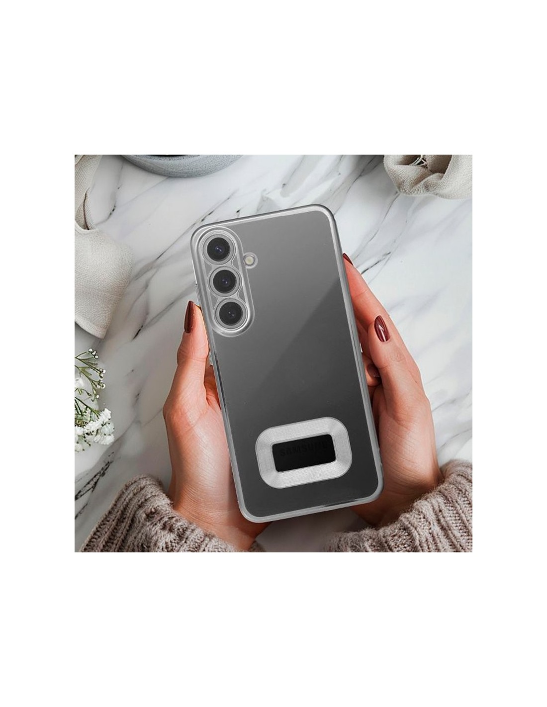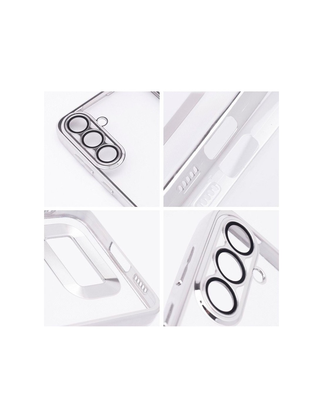 Carcasa totalmente transparente. Acabado metalizado en los bordes tipo bumper.