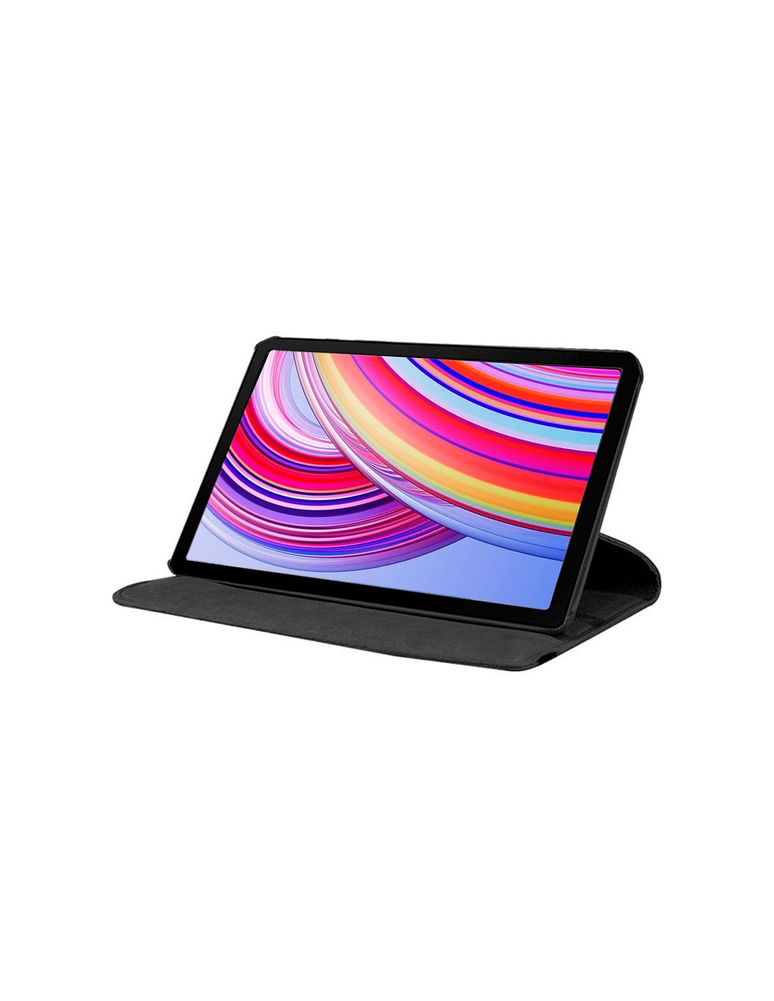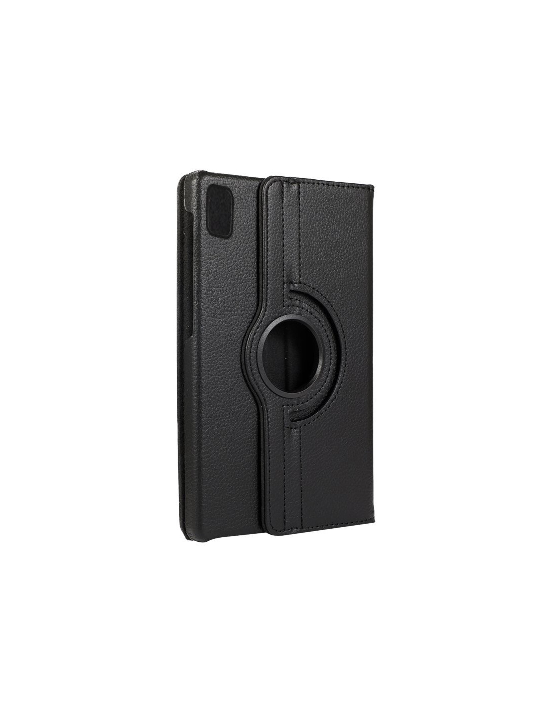 Material polipiel. Con su diseño giratorio, permite sostener la tablet en posición tanto horizontal como vertical. Presentada en caja-blister. Excelente calidad.