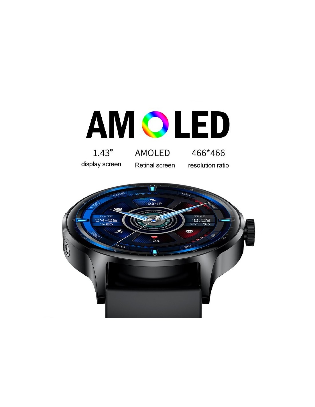 - Pantalla: 1,43" AMOLED 466 x 466 px.