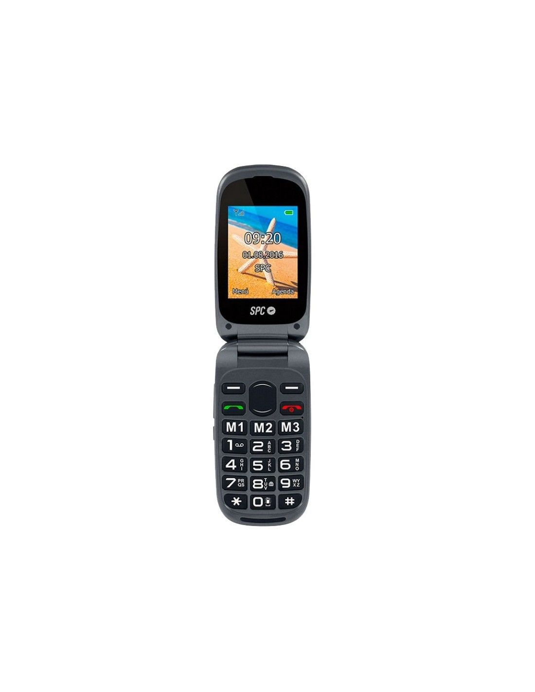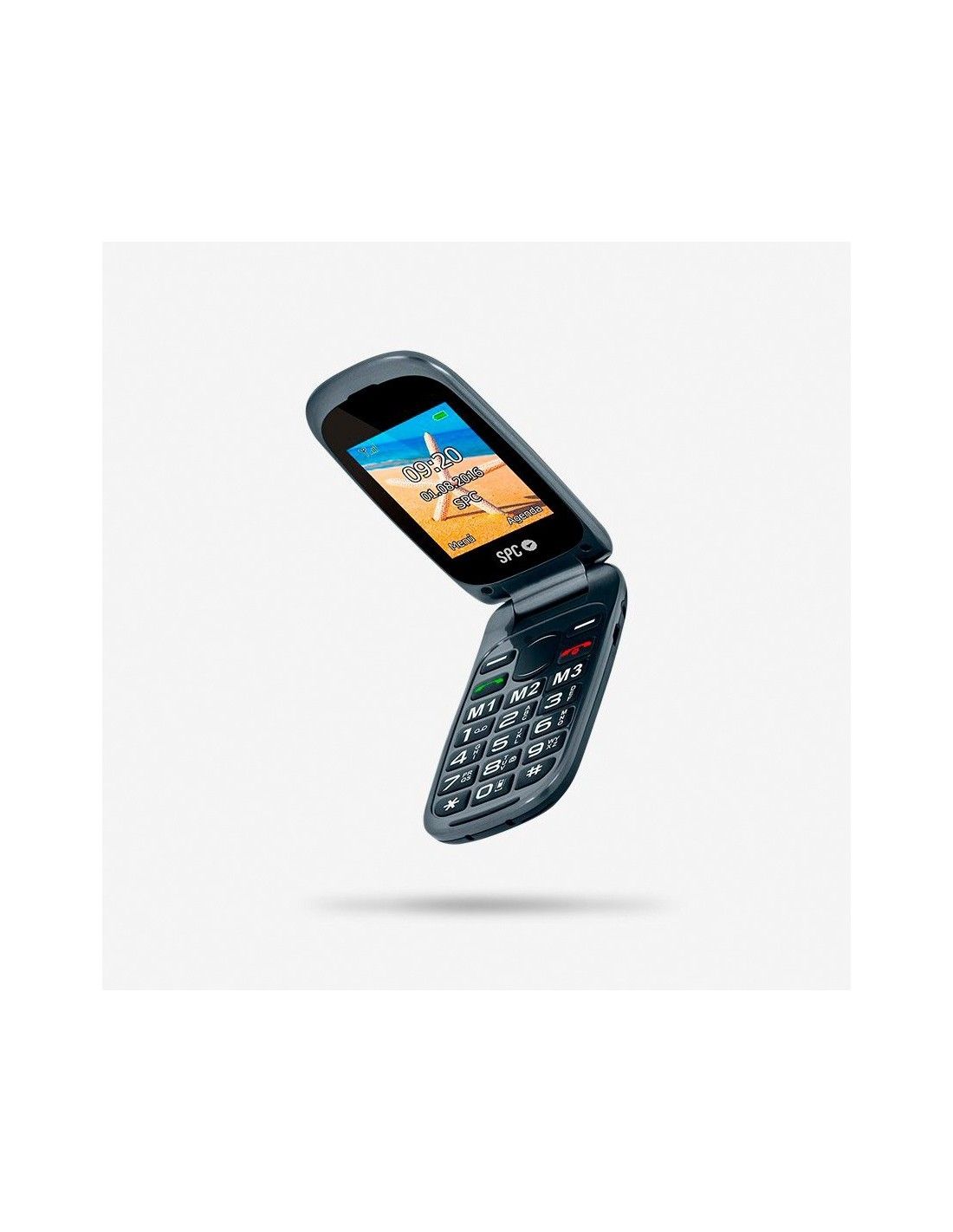 Un teléfono móvil práctico y sencillo. Dispone de botones grandes, memorización de números de emergencia y botón directo de llamada al 112.