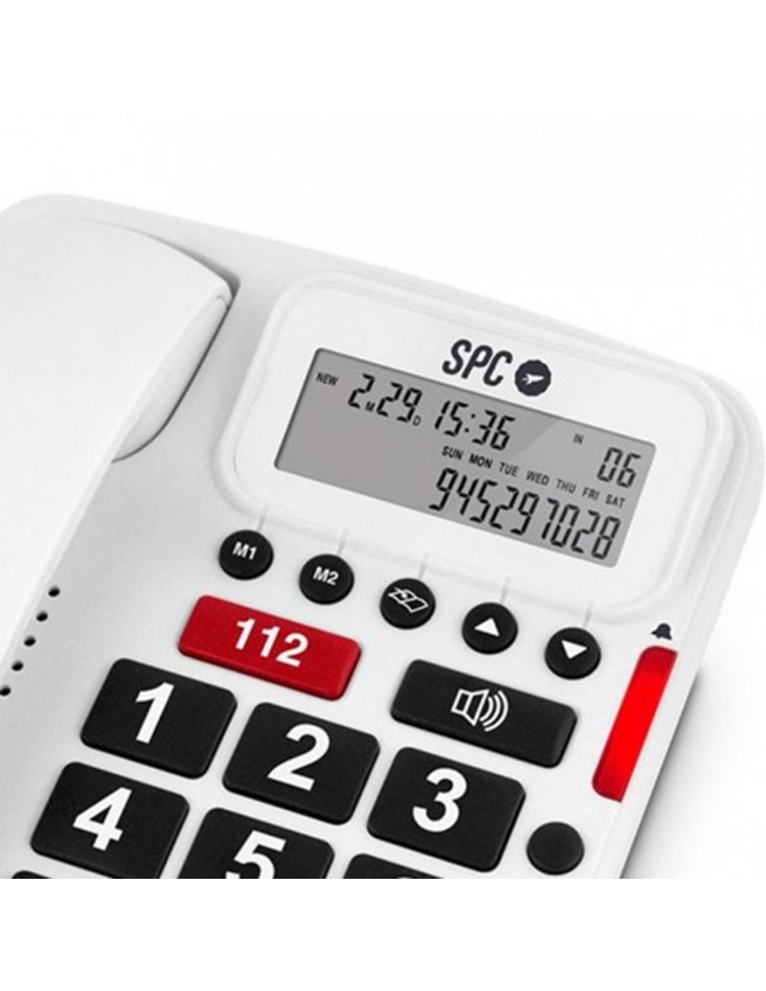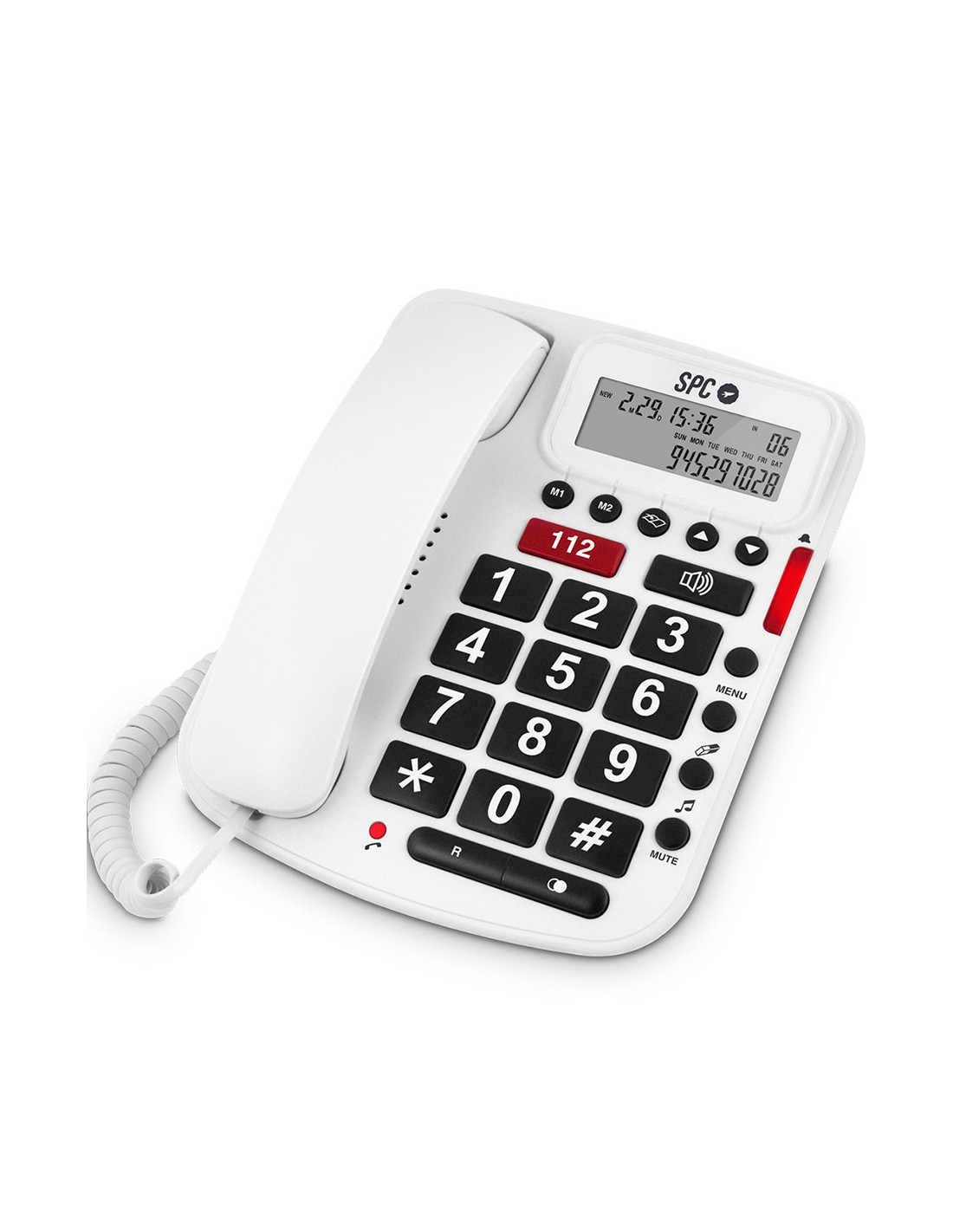 SPC COMFORT VOLUME aporta tranquilidad. Dispone de números muy grandes, a lo que se añade una pantalla para poder identificar quién nos llama. Incorpora una tecla directa de emergencias, lo que da mucha tranquilidad, y un indicador luminoso de aviso de llamada que complementa a su potente timbre. Además, su agenda admite 66 registros de nombres y números, dispone de identificador de llamadas y dos memorias directas.