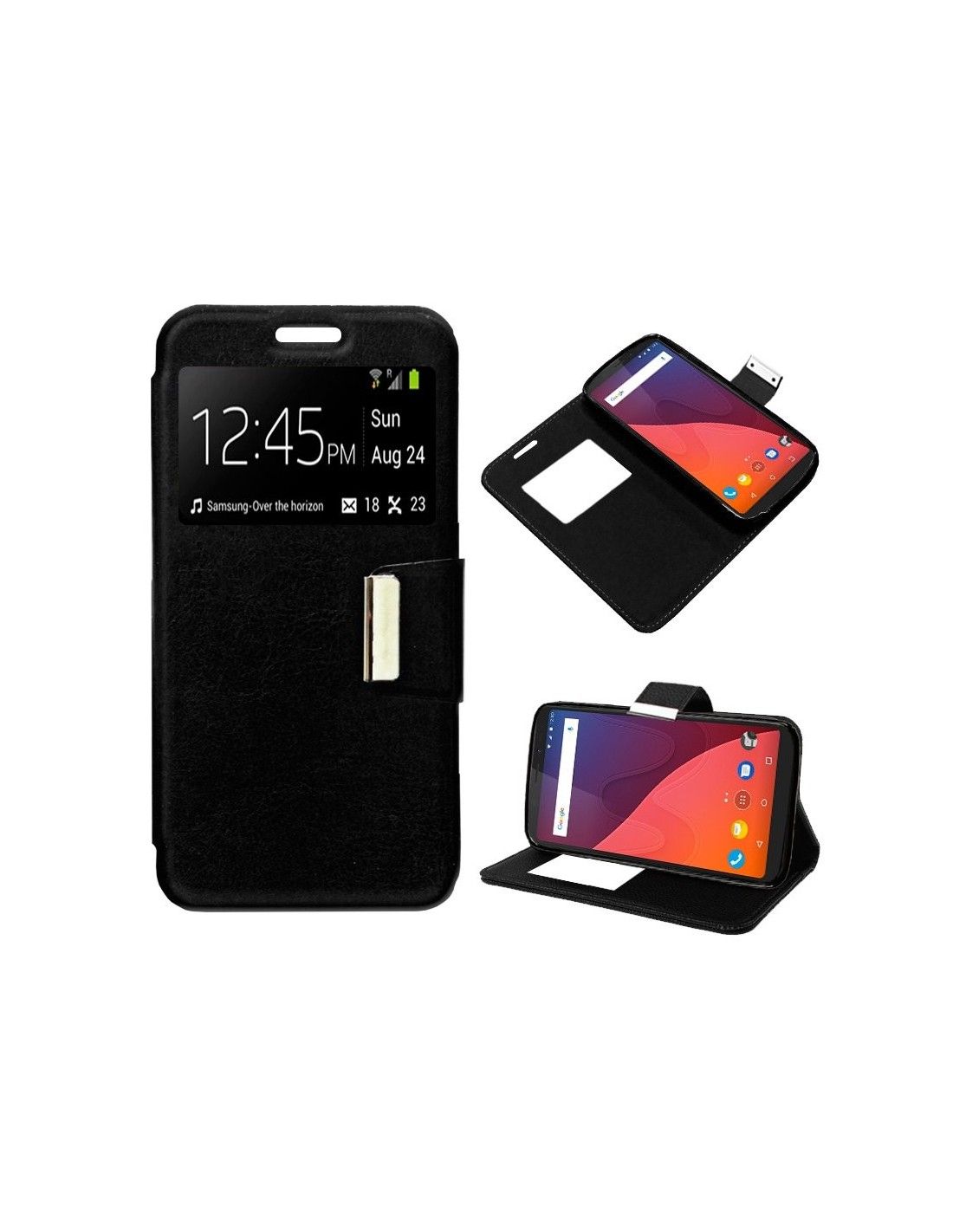 Funda libro soporte TPU Wiko View negra