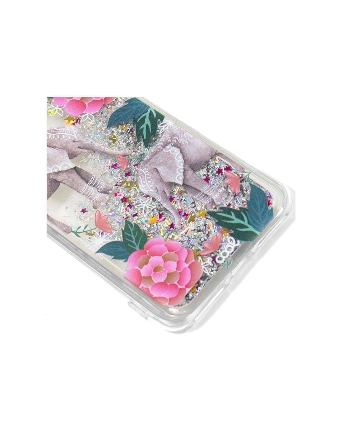Carcasa exclusiva Cool con purpurina brillante flotando.