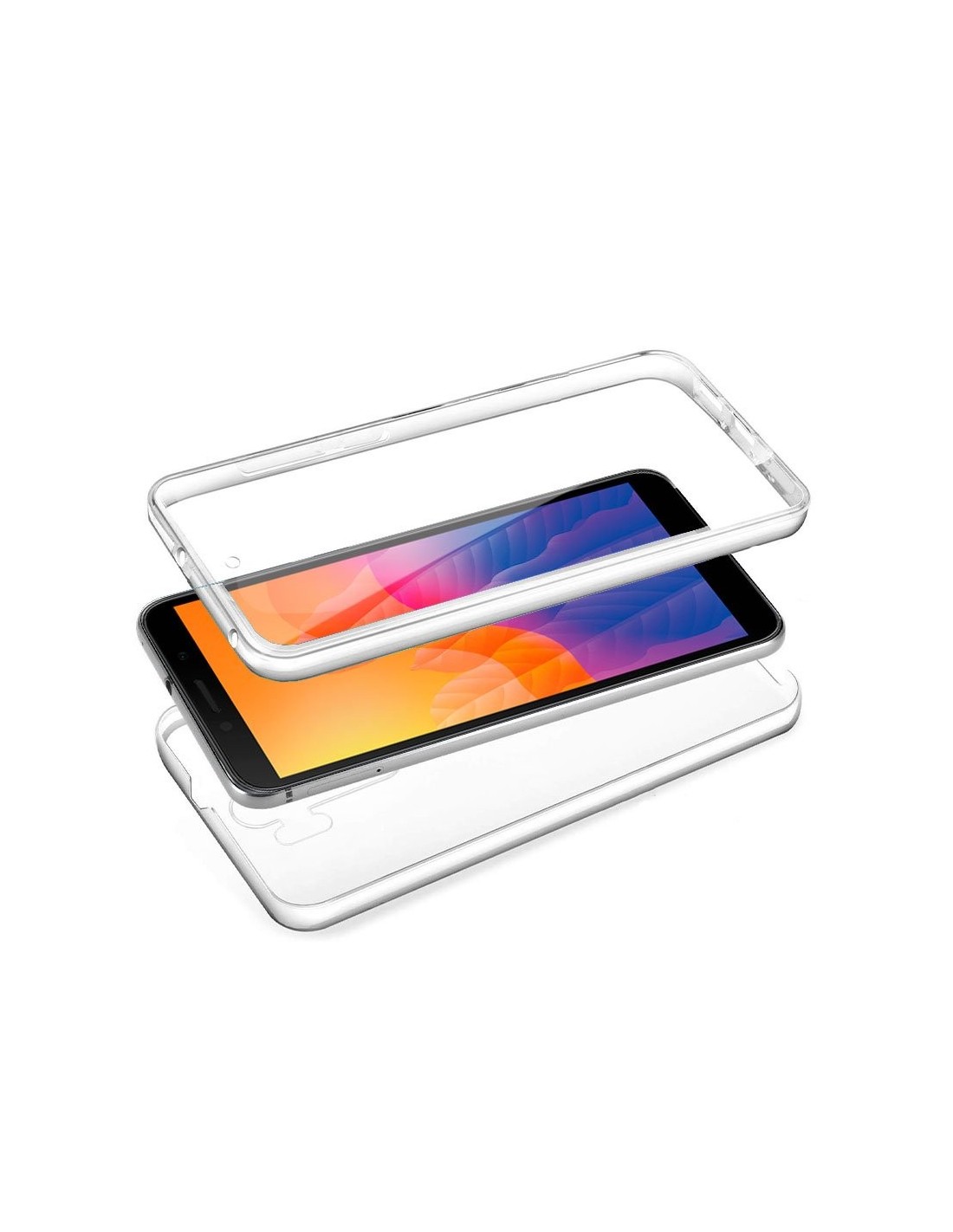 Funda tipo gel TPU 360º, cubre parte frontal y trasera del smartphone. Color 100 % transparente.