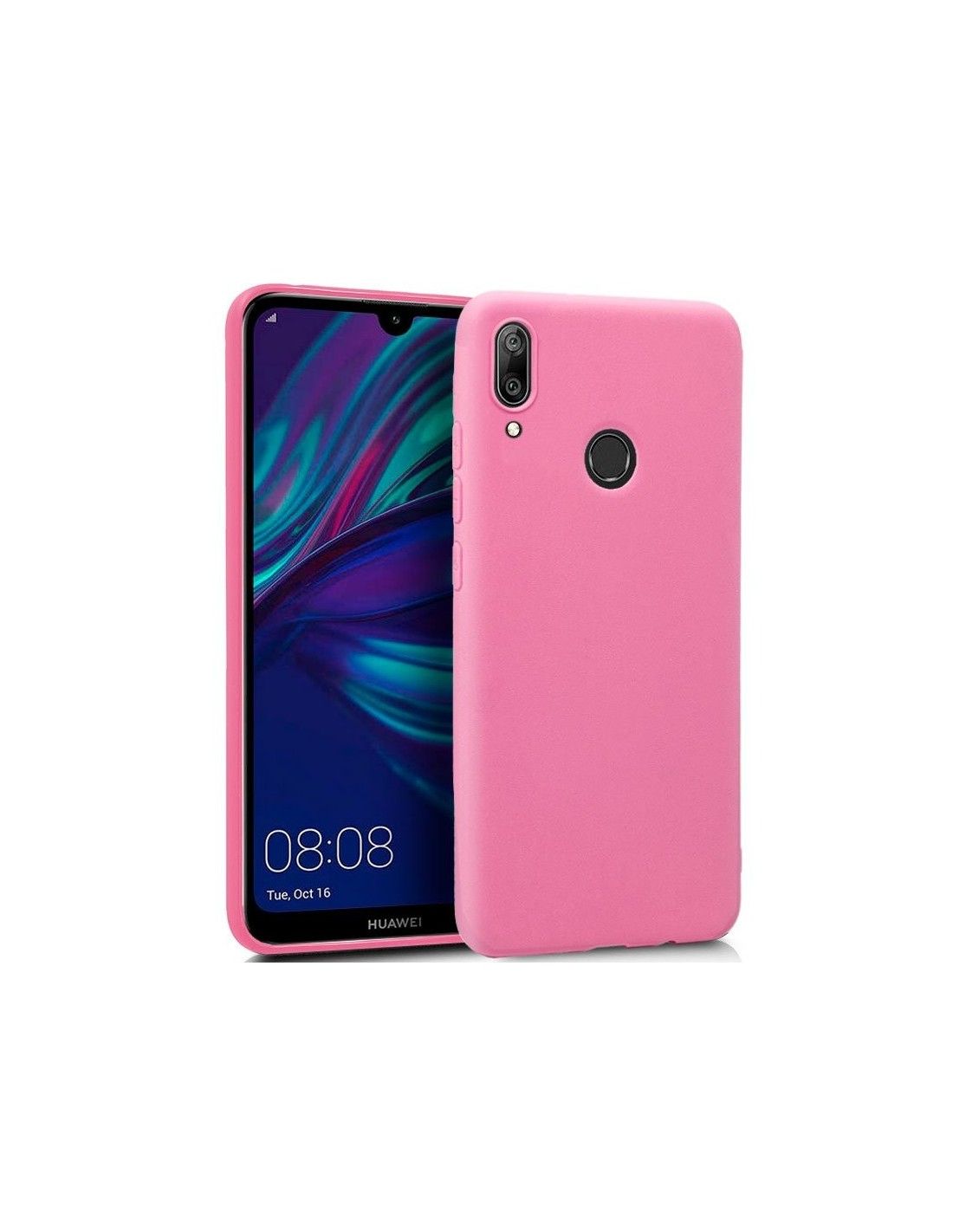 Funda silicona Huawei Y7 (2019) de color rosa.